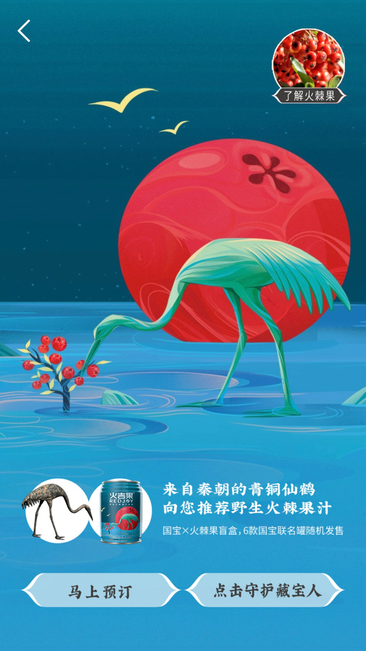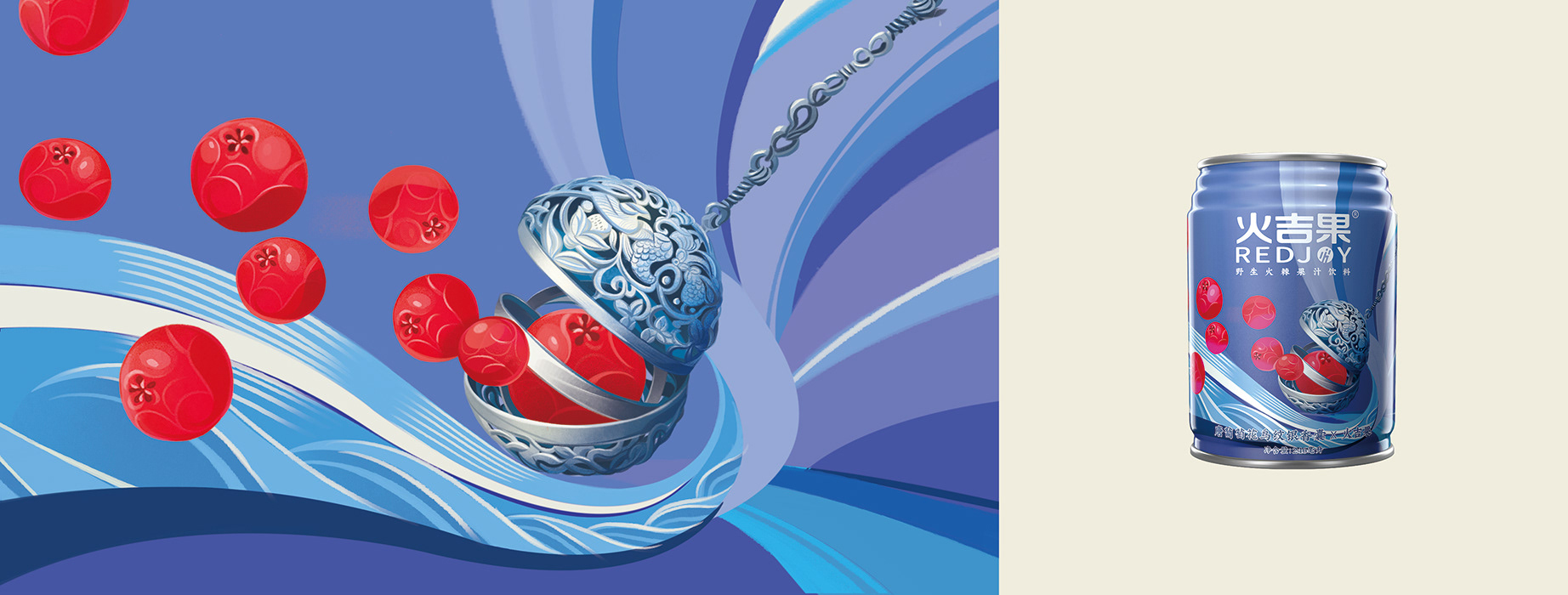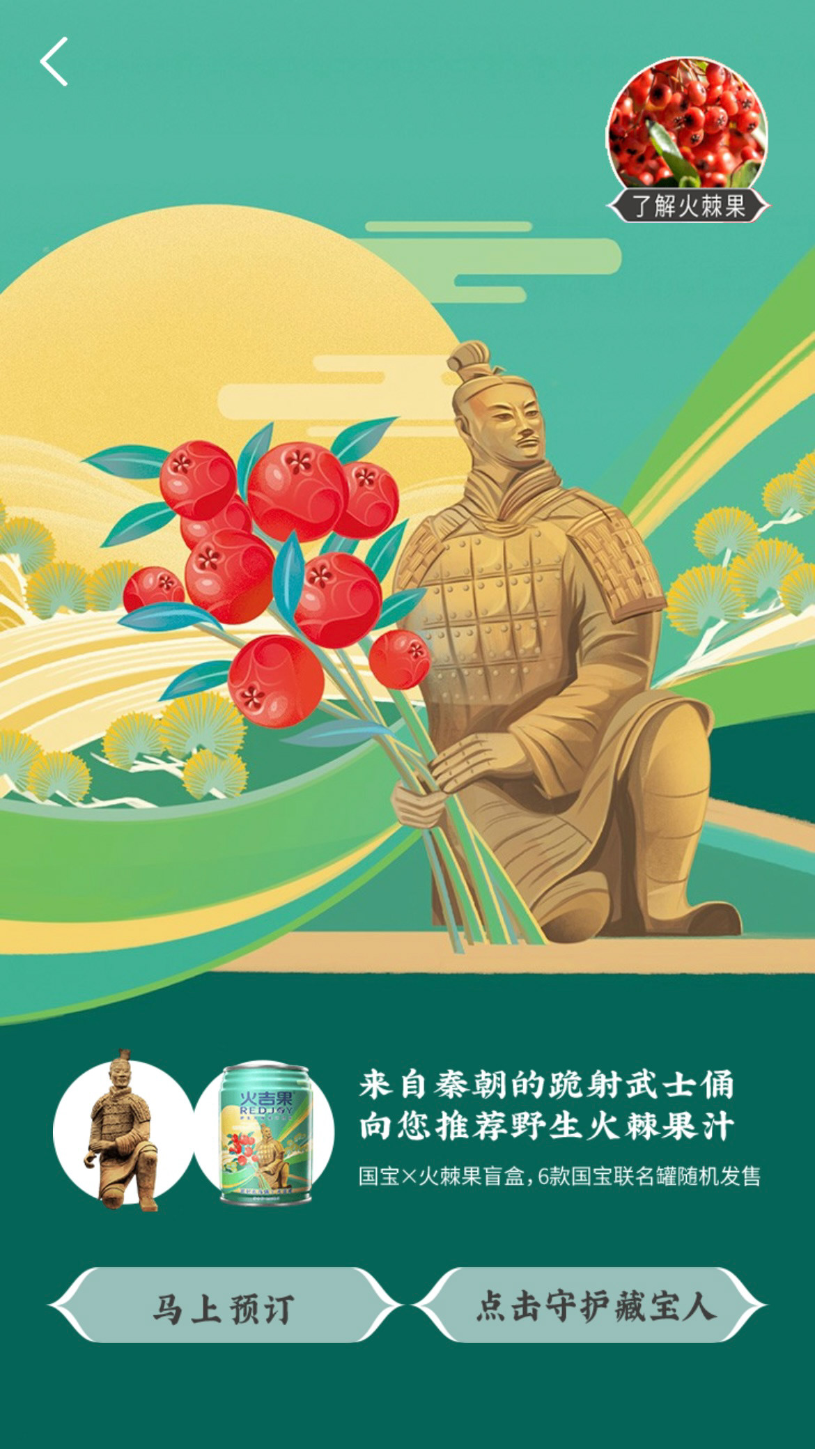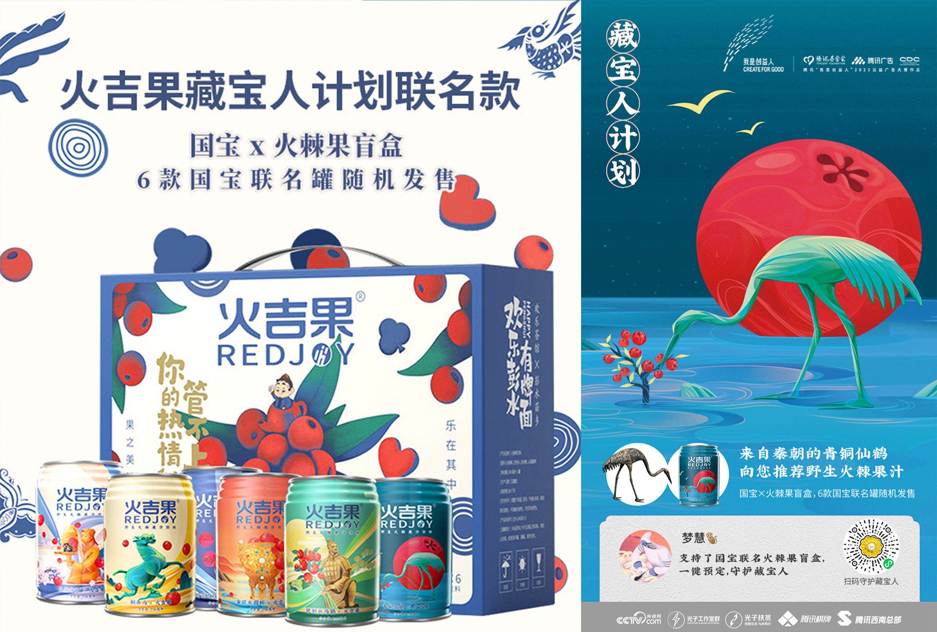 Protect the treasure people in the name of a national treasure. This is a charitable project commissioned by Tencent, "The Treasure People Project". I designed 6 different packagings combining Pyracantha crenatoserrata and national treasures, such as Changxin Palace lantern, Bronze Galloping Horse, and Terracotta Army. When designing the pictures, I used bold colors, smooth lines, and simple graphics to make the pictures more modern.